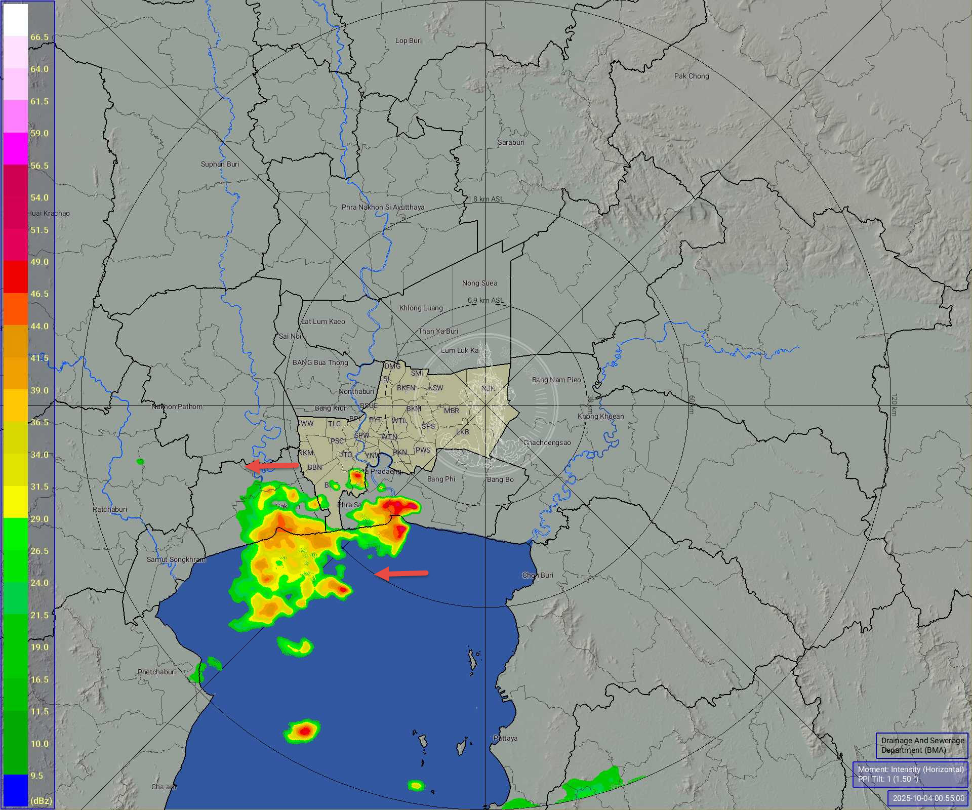 วันที่ 4 ตุลาคม 2568 เวลา 01.00 น. รายงานสภาพอากาศพื้นที่กรุงเทพมหานคร ฝนเล็กน้อยถึงปานกลางเขตบางขุนเทียน ทุ่งครุ ต่อเนื่องจังหวัดสมุทรสาคร เคลื่อนตัวทิศตะวันตก แนวโน้มคงที่ ปริมาณฝนสูงสุดเขตทุ่งคร 5.5 มม.