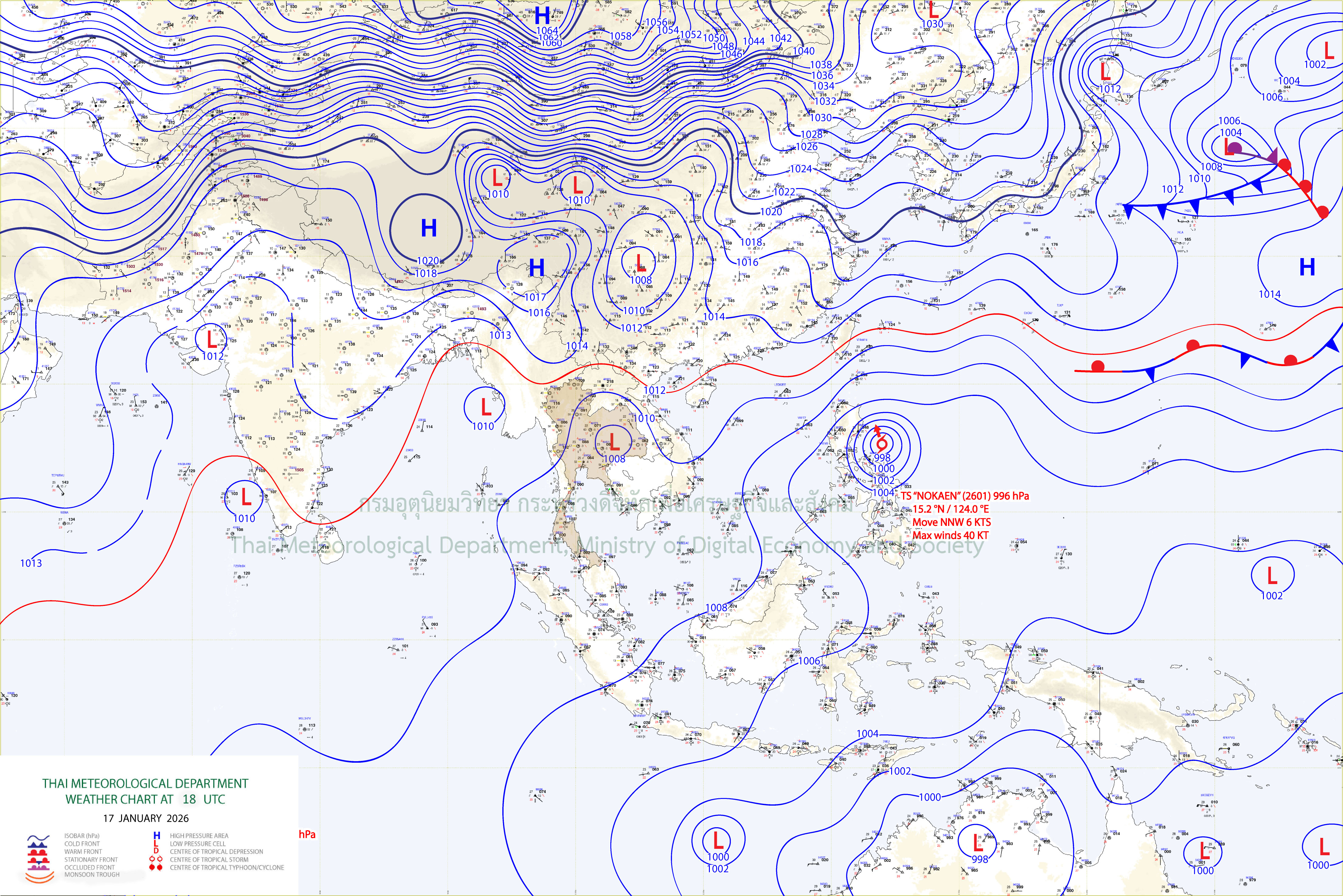 ลักษณะอากาศทั่วไป ประจำวันที่ 18 มกราคม 2569