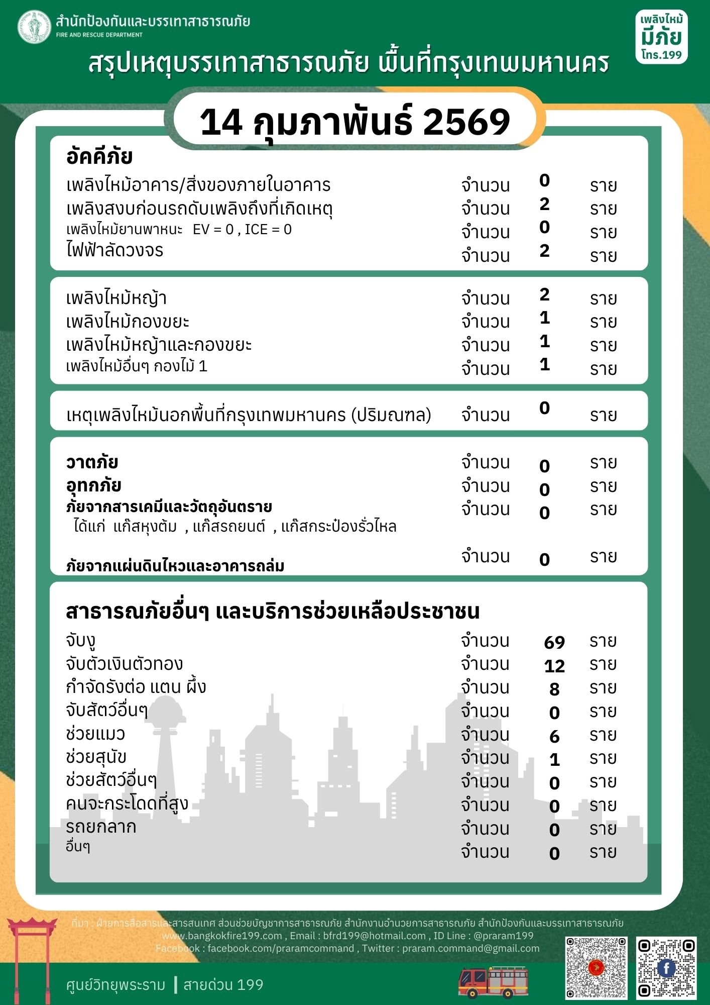 สรุปเหตุบรรเทาสาธารณภัย ประจำวันที่ 14 กุมภาพันธ์ 2569